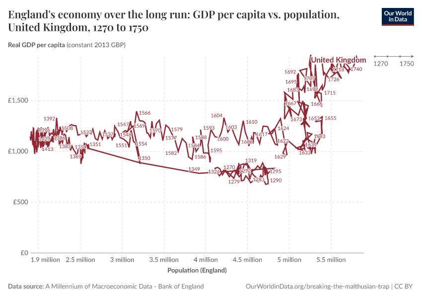 Max Roser (2020) - “Breaking out of the Malthusian trap: How pandemics allow us to understand why our ancestors were stuck in poverty” Published online at OurWorldinData.org. Retrieved from: 'https://edit-mdim.owid.pages.dev:8789/20251125-173858/breaking-the-malthusian-trap.html' [Online Resource] (archived on November 25, 2025).BibTeX citation