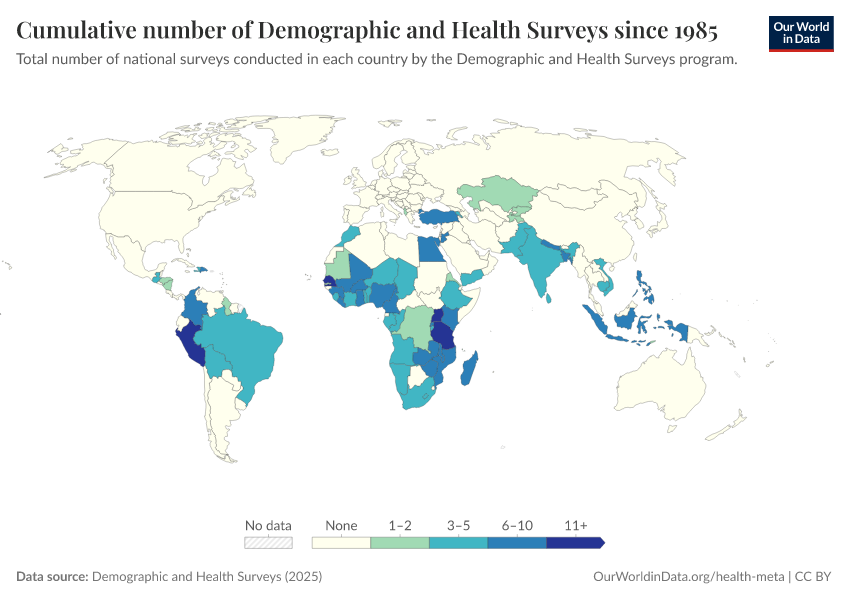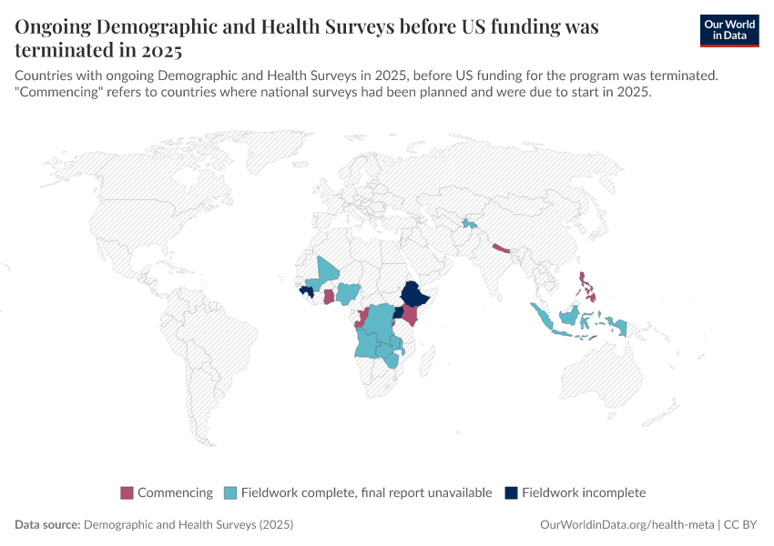Saloni Dattani (2025) - “The Demographic and Health Surveys brought crucial data for more than 90 countries — without them, we risk darkness” Published online at OurWorldinData.org. Retrieved from: 'https://edit-mdim.owid.pages.dev:8789/20260224-080822/demographic-health-surveys-risk.html' [Online Resource] (archived on February 24, 2026).BibTeX citation
