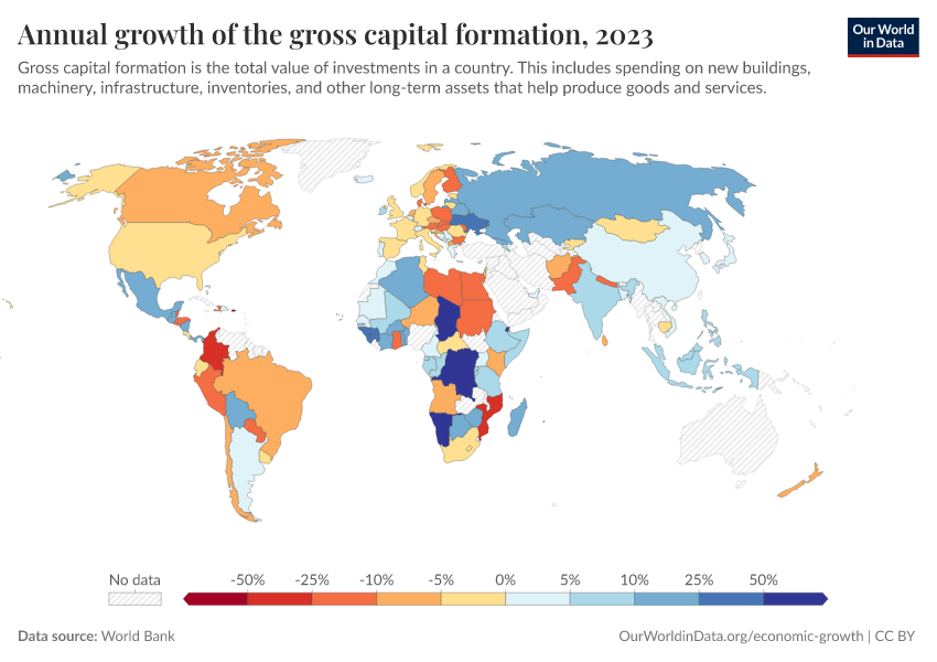 “Data Page: Annual growth of the gross capital formation”. Our World in Data (2026). Data adapted from World Bank. Retrieved from https://edit-mdim.owid.pages.dev:8789/20260130-180113/grapher/annual-growth-of-the-gross-capital-formation.html [online resource] (archived on January 30, 2026).How to cite this data