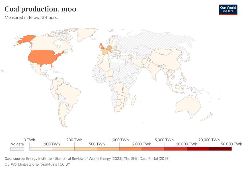 “Data Page: Coal production”, part of the following publication: Hannah Ritchie, Pablo Rosado, and Max Roser (2023) - “Energy”. Data adapted from Energy Institute, The Shift Data Portal. Retrieved from https://edit-mdim.owid.pages.dev:8789/20260119-070102/grapher/coal-production-by-country.html [online resource] (archived on January 19, 2026).