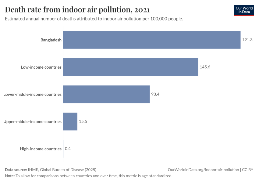 Death rate from indoor air pollution