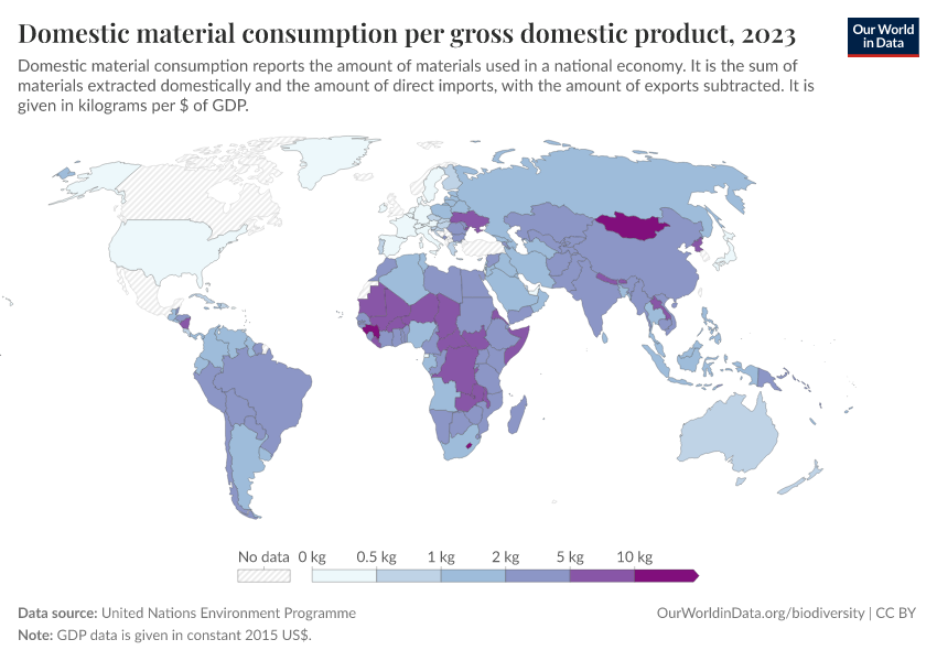 “Data Page: Domestic material consumption per gross domestic product”. Our World in Data (2026). Data adapted from United Nations Environment Programme. Retrieved from https://edit-mdim.owid.pages.dev:8789/20260130-180113/grapher/domestic-material-consumption-per-unit-of-gdp.html [online resource] (archived on January 30, 2026).How to cite this data