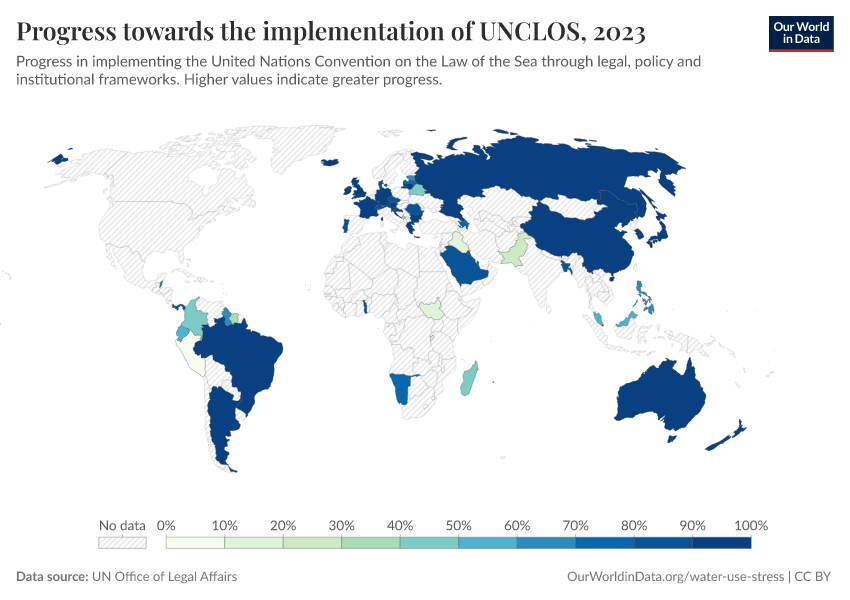 “Data Page: Progress towards the implementation of UNCLOS”. Our World in Data (2026). Data adapted from UN Office of Legal Affairs. Retrieved from https://edit-mdim.owid.pages.dev:8789/20251120-211749/grapher/implementation-of-unclos.html [online resource] (archived on November 20, 2025).How to cite this data