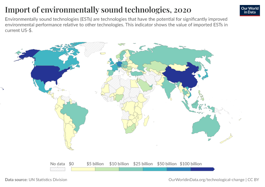 “Data Page: Import of environmentally sound technologies”. Our World in Data (2026). Data adapted from UN Statistics Division. Retrieved from https://edit-mdim.owid.pages.dev:8789/20260130-180113/grapher/import-of-environmentally-sound-technologies.html [online resource] (archived on January 30, 2026).How to cite this data