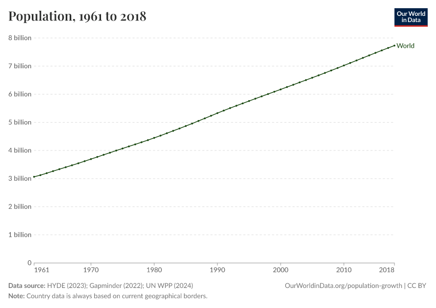 • 1800-1950: we estimate the global population by summing all available countries in the dataset.