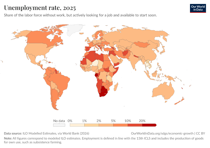 “Data Page: Unemployment rate”. Our World in Data (2026). Data adapted from ILO Modelled Estimates, via World Bank. Retrieved from https://edit-mdim.owid.pages.dev:8789/20260203-104517/grapher/unemployment-rate.html [online resource] (archived on February 3, 2026).How to cite this data