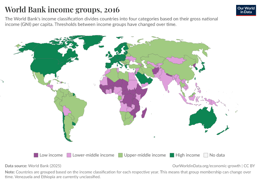 World Bank (2025) – with major processing by Our World in Data. “World Bank income groups” [dataset]. World Bank, “Income Classifications” [original data]. Retrieved February 24, 2026 from https://edit-mdim.owid.pages.dev:8789/20251021-211801/grapher/world-bank-income-groups.html (archived on October 21, 2025).