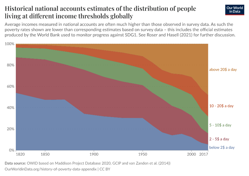 Joe Hasell (2019) - “Data appendix – The fight against global poverty: 200 years of progress and still a very long way to go” Published online at OurWorldinData.org. Retrieved from: 'https://edit-mdim.owid.pages.dev:8789/20260128-140124/history-of-poverty-data-appendix.html' [Online Resource] (archived on January 28, 2026).BibTeX citation