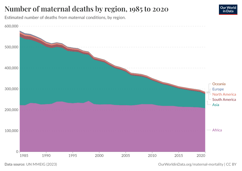 Max Roser and Hannah Ritchie (2013) - “Maternal Mortality” Published online at OurWorldinData.org. Retrieved from: 'https://edit-mdim.owid.pages.dev/maternal-mortality' [Online Resource]BibTeX citation