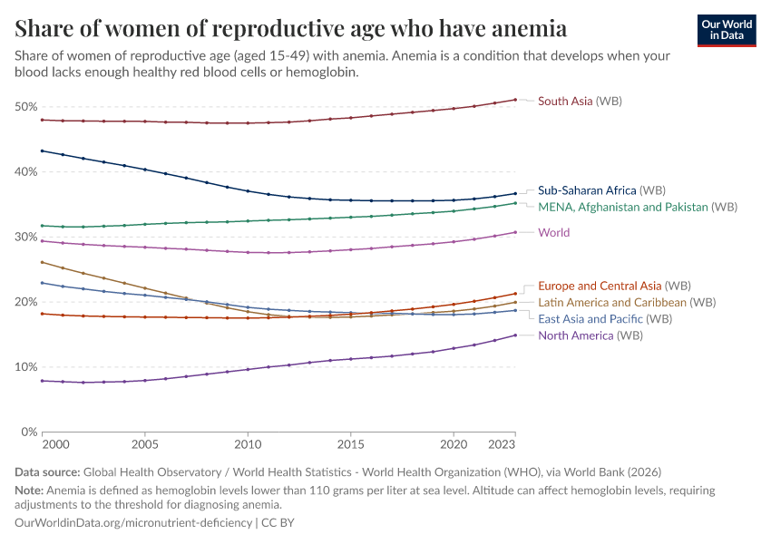 In the chart, we see the prevalence of anemia in women of reproductive age.