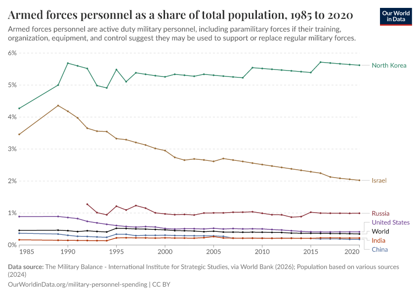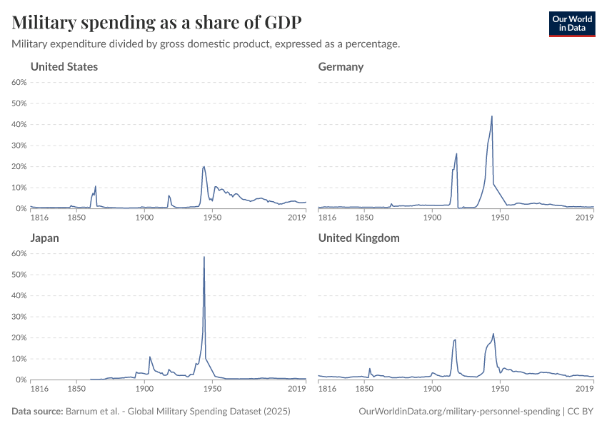 Esteban Ortiz-Ospina (2018) - “Long-run trends in military spending and personnel: four key facts from new data” Published online at OurWorldinData.org. Retrieved from: 'https://edit-mdim.owid.pages.dev:8789/20260202-181317/military-long-run-spending-perspective.html' [Online Resource] (archived on February 2, 2026).BibTeX citation