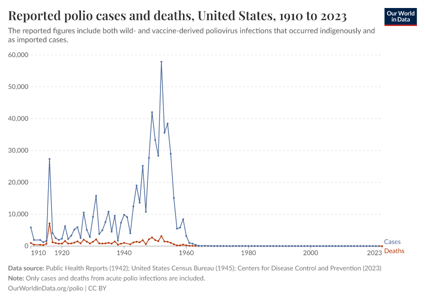 Saloni Dattani, Fiona Spooner, Sophie Ochmann, and Max Roser (2022) - “Polio” Published online at OurWorldinData.org. Retrieved from: 'https://edit-mdim.owid.pages.dev/polio' [Online Resource]BibTeX citation