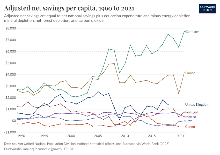 The next chart shows the World Bank's measure of Adjusted Net Saving (ANS), also an indicator of genuine saving.