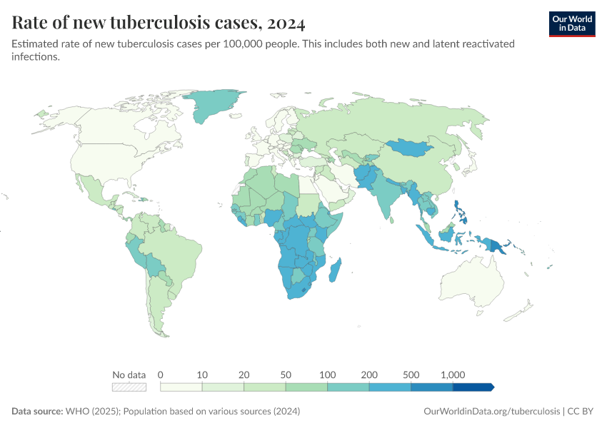 Saloni Dattani, Fiona Spooner, Hannah Ritchie, and Max Roser (2023) - “Tuberculosis” Published online at OurWorldinData.org. Retrieved from: 'https://edit-mdim.owid.pages.dev/tuberculosis' [Online Resource]BibTeX citation